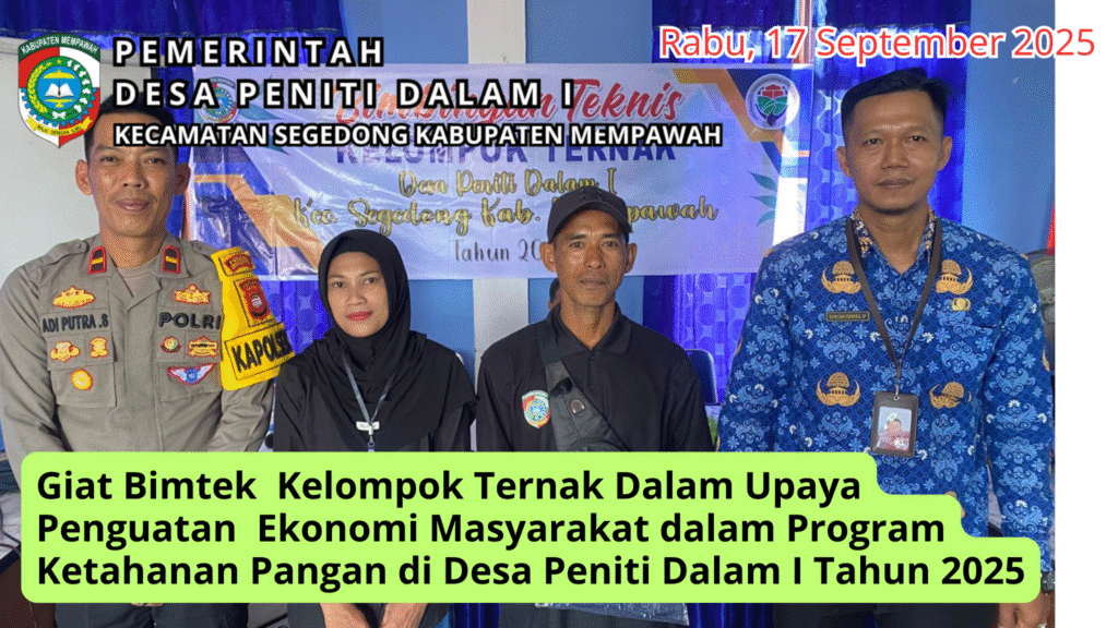 Bimbingan Teknis Kelompok Ternak di Desa Peniti Dalam I Tahun 2025, kegiatan ini di Laksanakan dalam Upaya Peningkatan Ekonomi Masyarakat dalam Program Ketahanan Pangan dan Bimtek ini bertujuan agar dalam pengelolaan ternak kelompok masyarakat dapat merawat Ternak yang dimiliki dapat hidup sehat dan tidak rentan terhadap Penyakit Hewan..